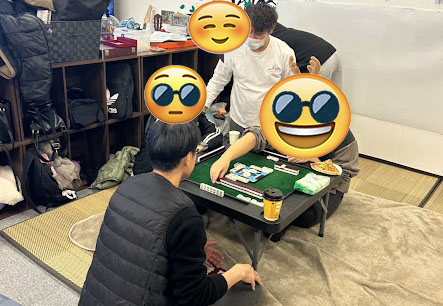 お昼ご飯のあとは、しばらく自由時間です。それぞれ好きなゲームや麻雀で遊びました。どこもクリスマスモードで、ルンルンでした。
