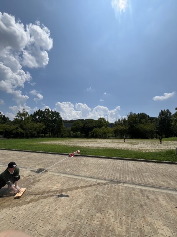 暑い日差しの中、水を浴びながらロケットが飛んでいくのをみんなで見守るのは楽しかったです。