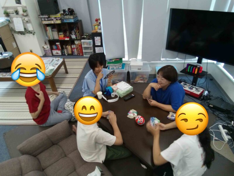 待っている間はカードゲームをして遊びました!