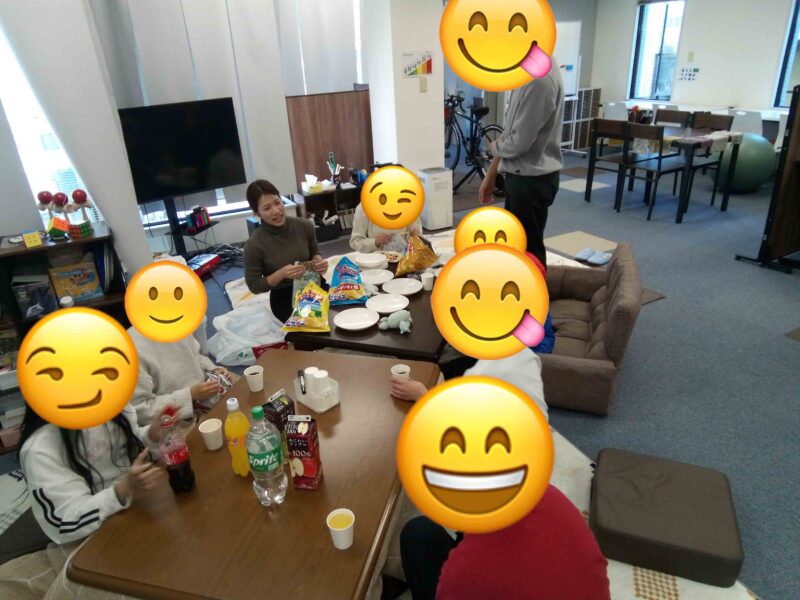 お疲れ様会ということで、お菓子パーティーを開催しました。