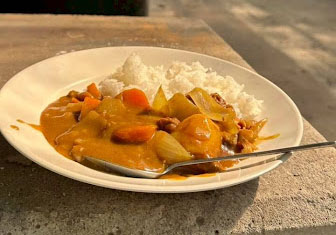 屋外で、みんなで食べるカレーは格別に美味しかったです。お米も野菜もしっかりと火が通っていて、とても美味しい仕上がりでした。皆さま笑顔で食べられていました。